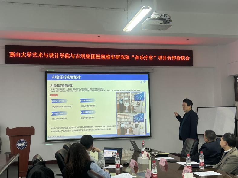 座谈会上,双方分别介绍了研究成果与合作基础,围绕音乐疗愈在极氪高端汽车中的应用方向开展深入交流,聚焦合作方案与实施路径充分研讨,并在产学研深度融合、科研成果转化、工业设计及康养等领域达成共识。双方一致认为,随着智能制造、智慧出行与用户体验创新加速发展,“以人为本” 的人文价值创新与音乐疗愈的智能化、场景化融合日趋紧密,高校与行业龙头企业在推动创新链、产业链、人才链深度衔接上具有广阔合作前景。此次交流进一步拓宽了音乐疗愈智能体的应用场景与产业边界,为艺术疗愈、认知科学与智能装备、出行科技的跨界融合奠定基础,也为我院产学研用一体化发展注入新动能。