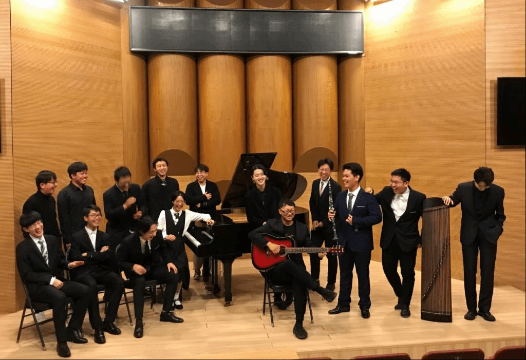 本场音乐会是该课程建设项目的汇报成果之一。不少同学第一次接触钢琴,通过32课时的学习,能够登上音乐厅的舞台,演奏自己力所能及的钢琴小品;也有的同学本就有钢琴或其它乐器特长,如:钢琴演奏十级水平、单簧管演奏曾荣获天津市文艺展演个人二等奖、古筝十级、吉他演奏等,这些同学不仅具备音乐特长,而且高考中依然成绩傲人。在教学过程中,根据同学们的实际情况,按照钢琴演奏程度不同,以及不同的乐器特长种类组合编排曲目。作品形式包括:钢琴独奏、四手联弹、六手联弹;钢琴与其他乐器合奏;钢琴与声乐等形式。