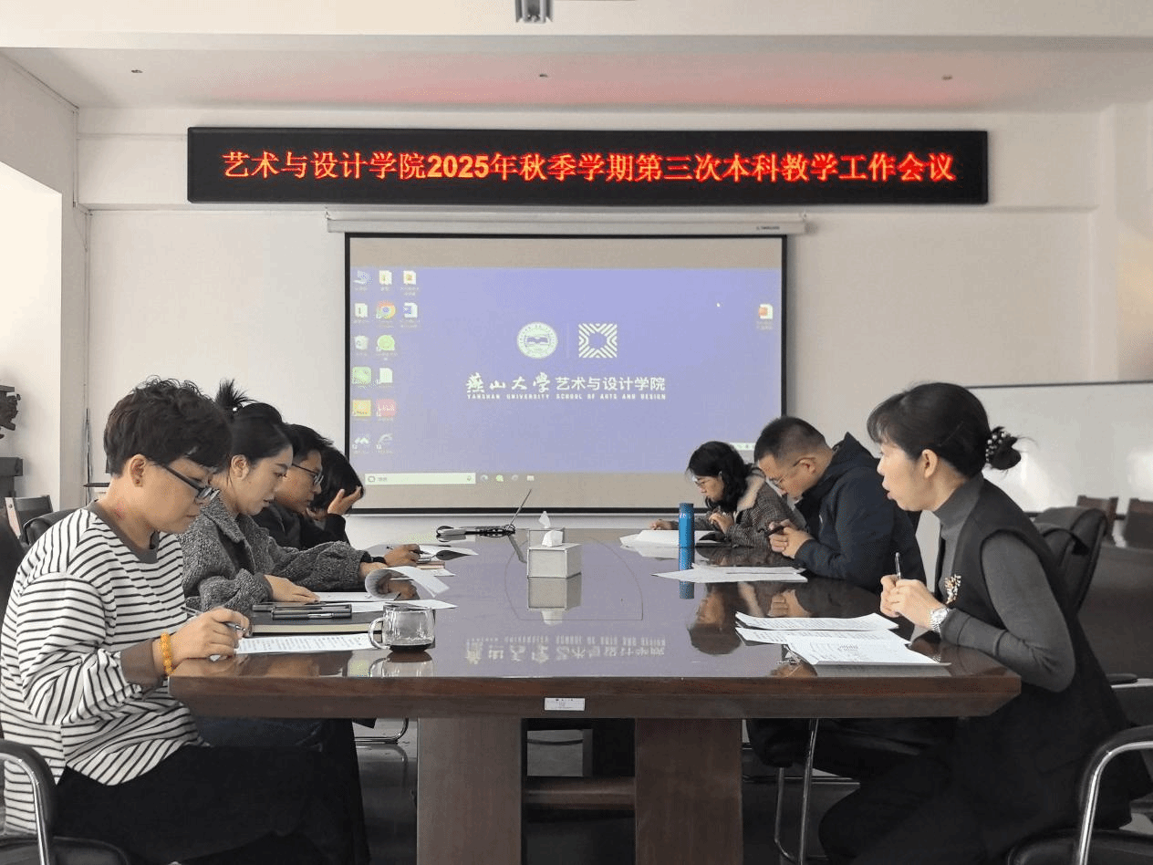 2025年10月22日上午,艺术与设计学院在C305会议室召开本学期第三次教学工作会议。会议由教学院长主持,各专业负责人(系主任、副主任)及教学秘书参加。会议围绕校选课申报、期中教学检查、教改项目验收、大类分流等重点工作进行了部署和讨论。