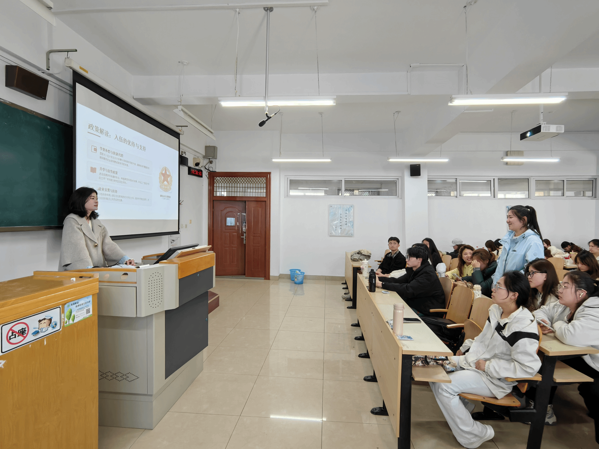 宣讲会邀请了韩斌、雷如香、郭浩然三位光荣退役返校的大学生作为主讲嘉宾。他们结合自身在部队的宝贵经历,从不同角度分享了参军入伍的初心、在军营的磨砺成长与收获。三名同学详细解读了当前的参军入伍政策,包括报名条件、选拔流程、优待政策及发展前景,结合自身经历,生动展现了军旅生活对个人意志、体魄和综合素质的深刻塑造。